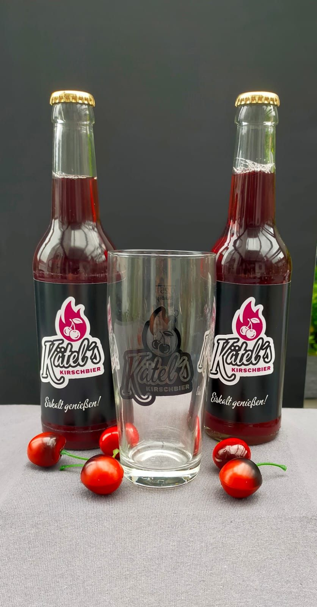 Kätel's Kirschbier zwei Flaschen und ein Glas im schicken Tragekarton !