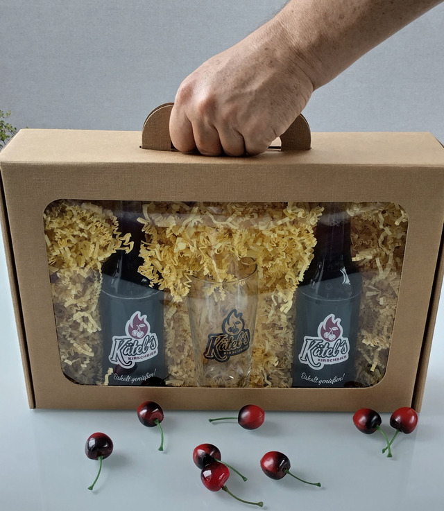 Kätel's Kirschbier 2 Flaschen und ein Glas im Geschenkkarton
